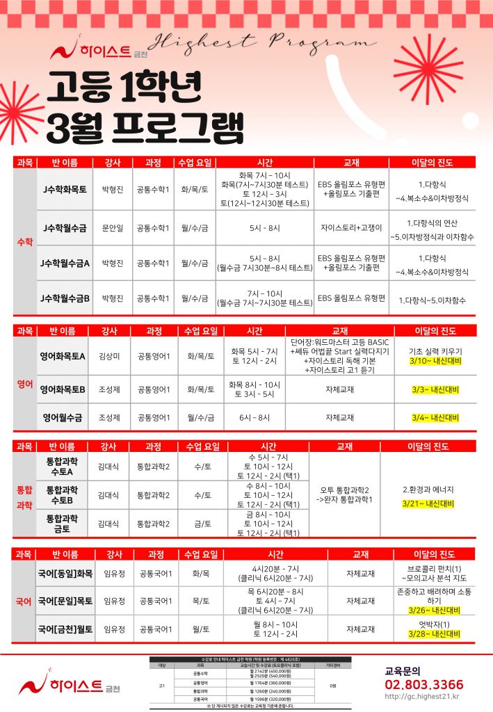 Home/[고등] 고등1학년 3월 프로그램
