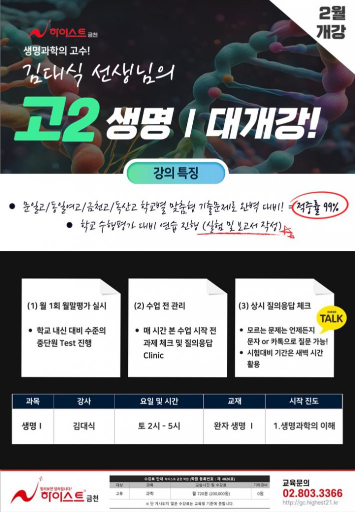 [고등] 생명Ⅰ2월 大개강!