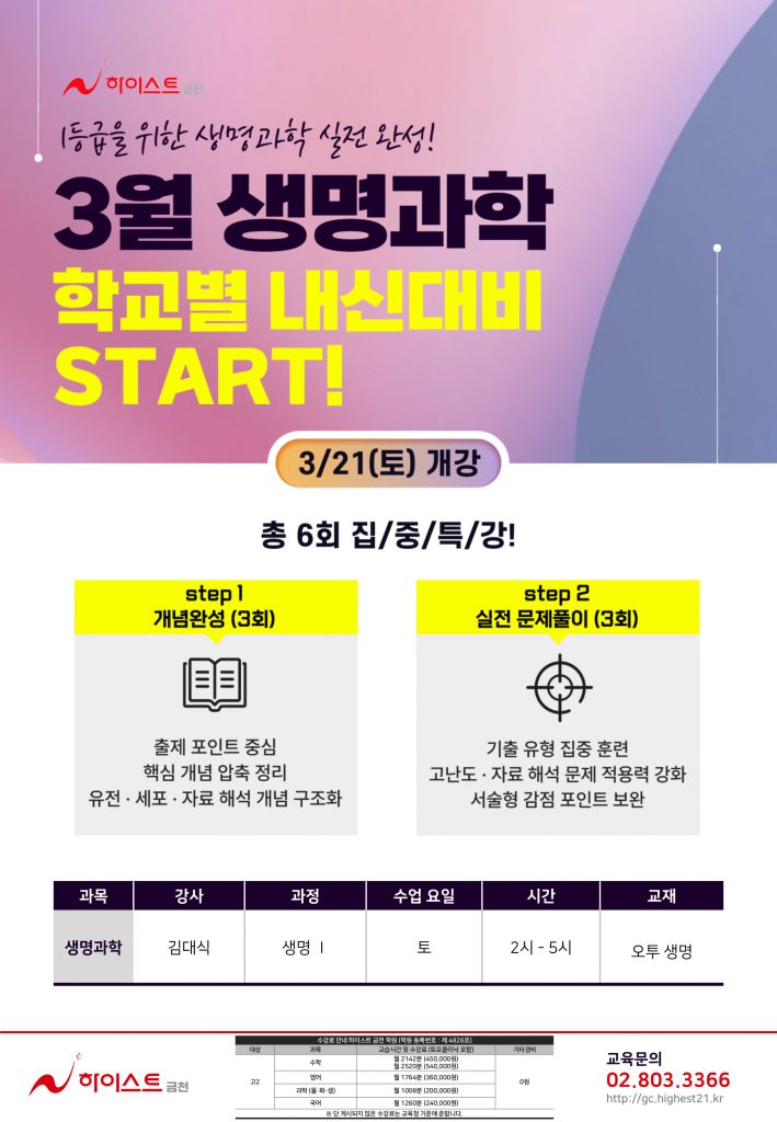 Home/[고등] 생명 3월 내신대비 특강 개강!