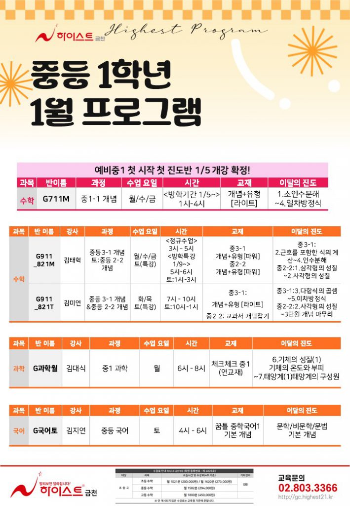[중등] 중등1학년 1월 프로그램